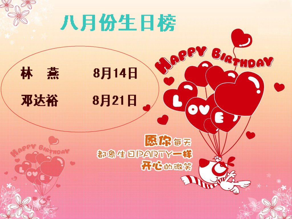 八月份员工生日榜