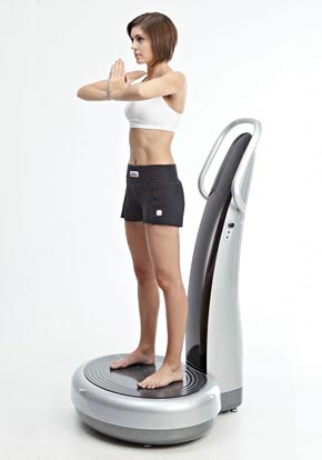 姿势:双腿与肩同宽,站于机板中间,双腿直立或者微弯,双手自然握于扶手,全身放松,不要出力,背部轻松直立,此姿势可紧实肌肤,促进全身血液循环,增加细胞活性。该过程中声波振动运动机保持12-16HZ频率。