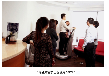 事实上,在关心员工健康方面,很多的公司会为员工提供免费年检、组织运动休闲活动、或为员工办理健身卡等等。2013年,有互联网龙头之称的百度(深圳)公司迎来了一项特殊的员工福利——韩国SONIX运动机,方便员工在工作、休息之余能参与健身保健,此举受到员工们的欢迎。随后,广州诺亚财富管理中心、广东南方福瑞德律师事务所等企业也相继展示出这项来自韩国的最大员工福利。