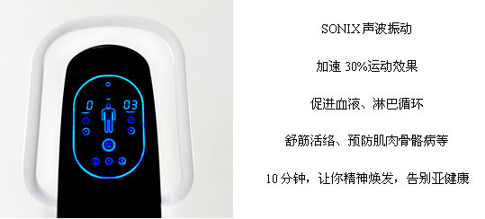SONIX声波振动运动机是一款目前普遍应用于国内外医院、健身馆的运动机,该运动机主要是通过声波带动机器振动,以振动帮助站于机器上的使用者被动或主动训练,同时频率和强度可手动调试,从而改变振动部位,试用于不同年龄人群。
