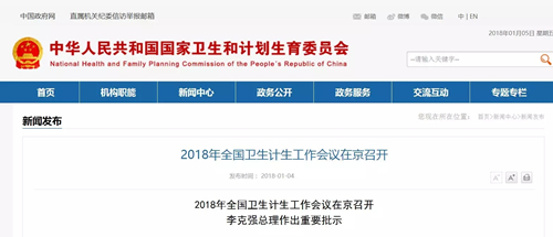 1月4日,2018年全国卫生计生工作会议在京召开。总理作出重要批示,国家卫生计生委主任、党组书记李斌作工作报告,国家卫生计生委副主任、国家中医药局局长王国强主持会议并作会议总结。