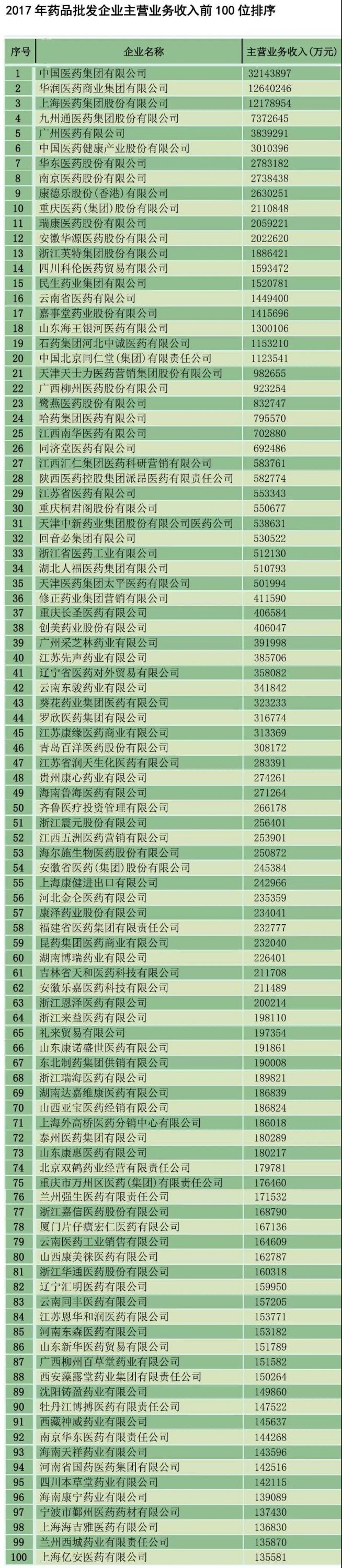 2017中国医药商业百强、零售百强榜公布(附名单)